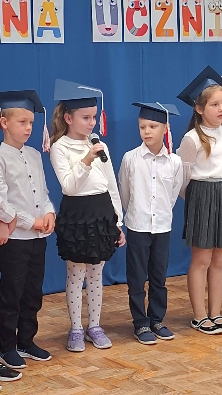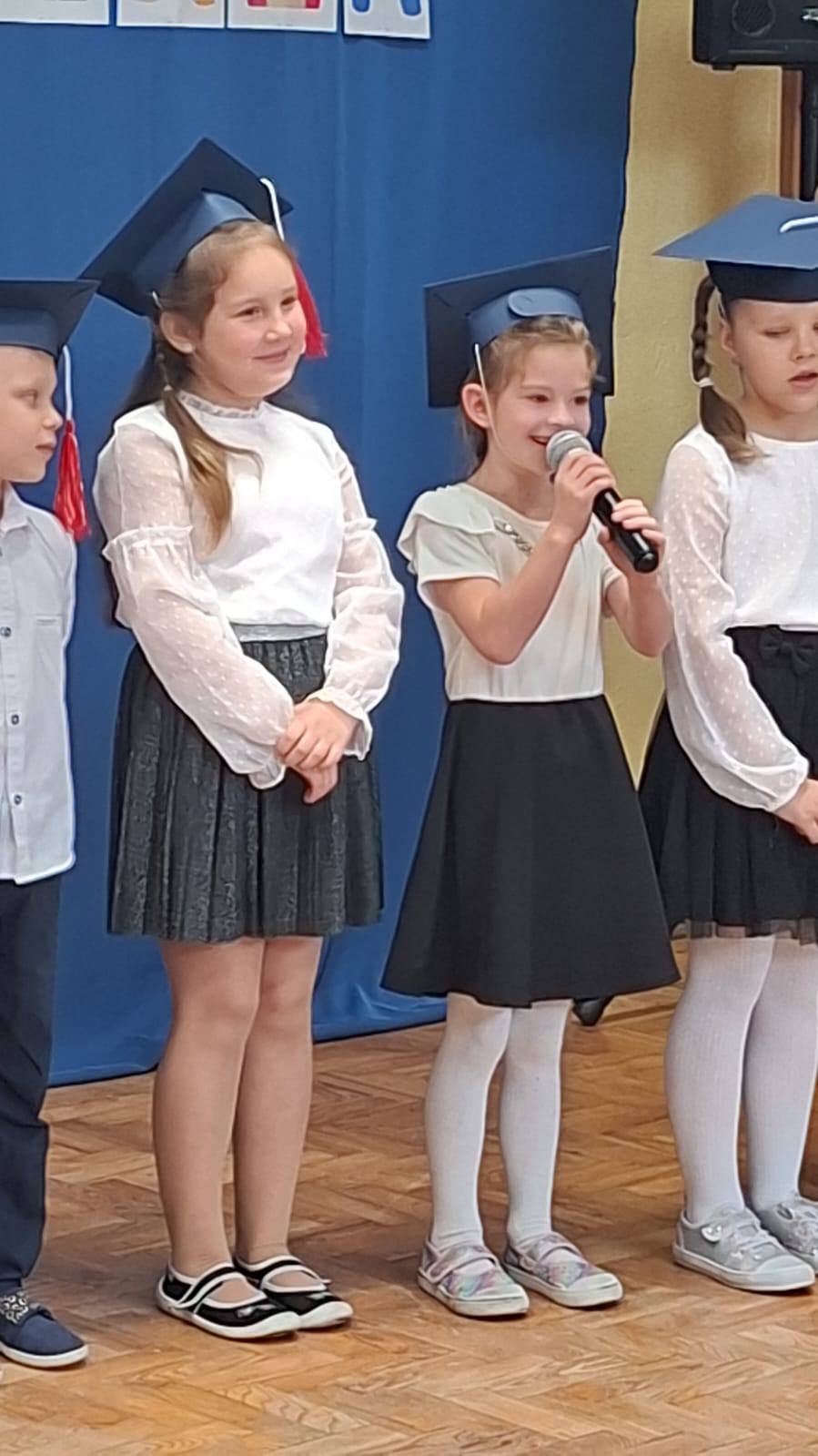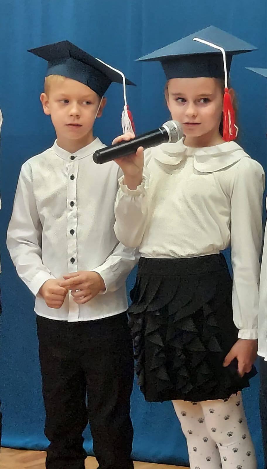 Pierwszoklasiści po części artystycznej złożyli uroczyste ślubowanie przed całą społecznością szkolną. Pan dyrektor pasował ich na pełno prawnych uczniów i wręczył im pamiątkowe dyplomy i medale 👧🧑🥇🏅
