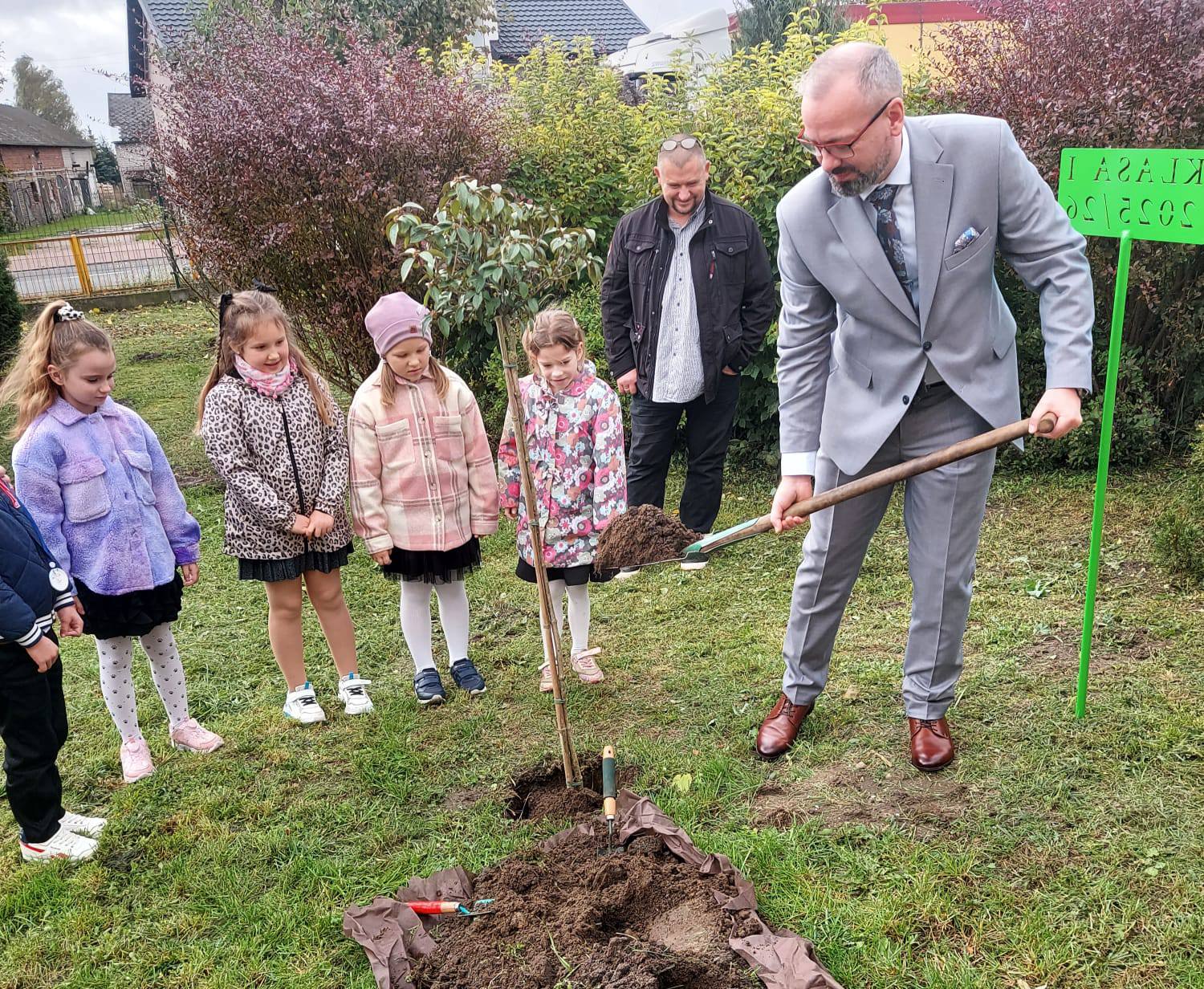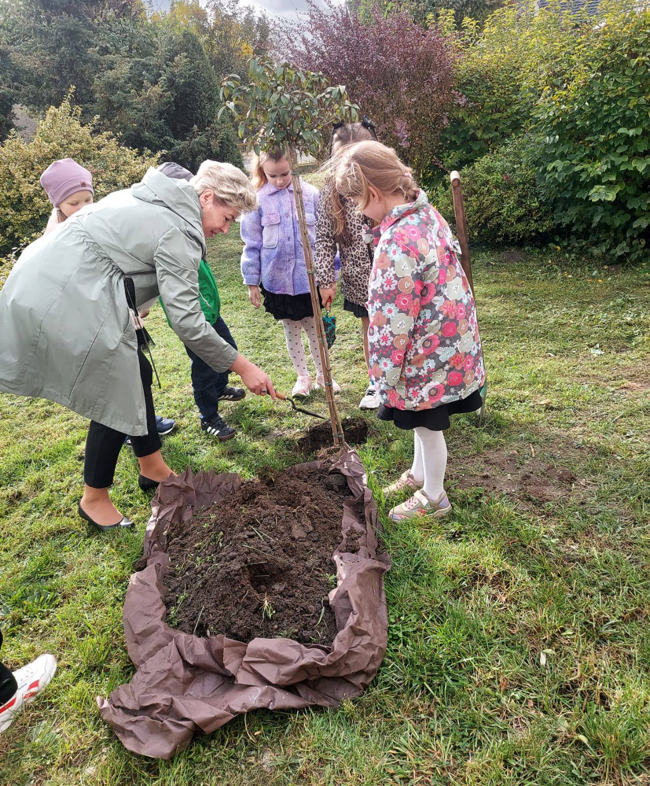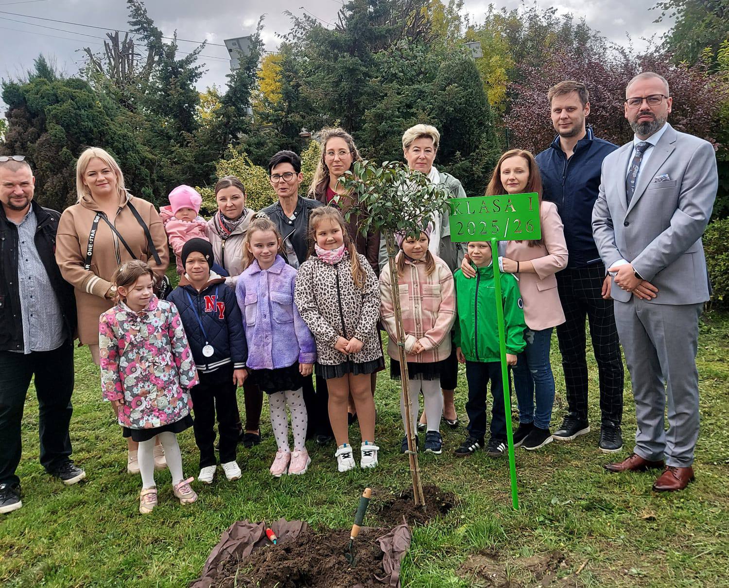 Po uroczystości pierwszoklasiści wraz z rodzicami, dyrektorem i wychowawcą posadzili pamiątkowe drzewko 🌳👩👨